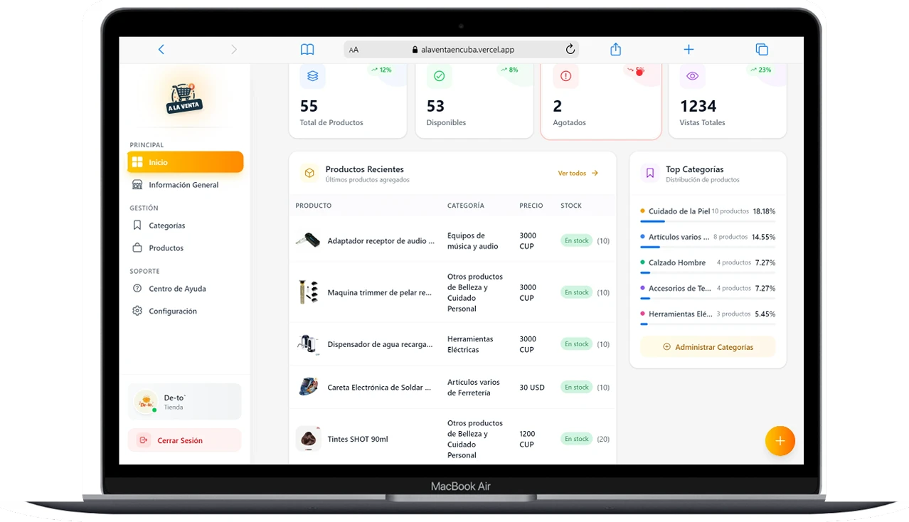 Gestiona productos, estadísticas y clientes desde un solo lugar.